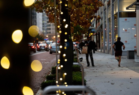 11月4日,在美国首都华盛顿,行人走在一处商业街区。(新华社记者刘杰摄)