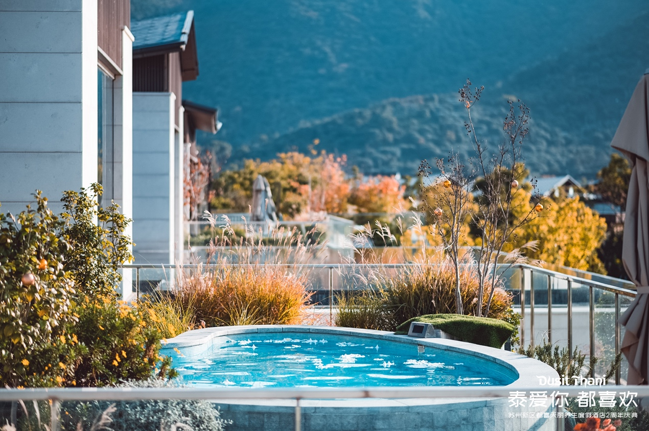 苏州新区都喜天丽养生度假酒店,位于著名的树山生态村,打造沉浸式泰国风情度假空间,诠释“自在养生”的品牌理念。在三山环绕、水光迤逦之间,回归本源,感知自然,酒店点缀东方禅意美学情韵之妙,融合南亚海岛艳丽风尚之华,尽显中式江南婉约古典之美。为旅行者缔造集山野自然、历史人文、温泉养生为一体的城市度假养生福地。
