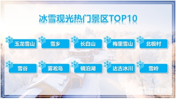 从截至目前的预订及搜索数据来看,冰雪观光主题的热门目的地主要集中在云南、四川以及东三省等地区。其中玉龙雪山、雪乡、长白山、梅里雪山、北极村、雪谷、雾凇岛、镜泊湖、达古冰川、雪岭等景区热度排名靠前。