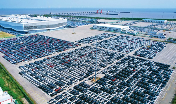 2022年以来,伴随着我国汽车企业竞争力、产品力的增强,以及海外需求的增长,我国汽车出口延续上升势头。图为2022年8月13日,上海自贸区临港新片区陆域一类口岸开放码头——南港码头,排列整齐的汽车整装待发。 人民图片 计海新/摄