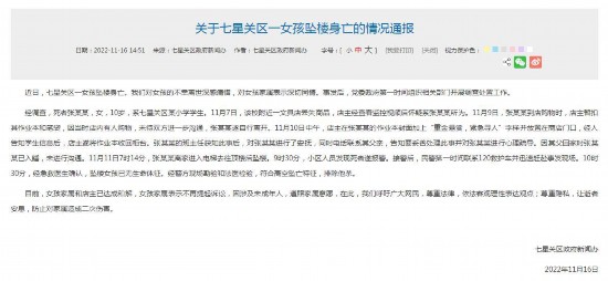 近日,七星关区一女孩坠楼身亡。我们对女孩的不幸离世深感痛惜,对女孩家属表示深切同情。事发后,党委政府第一时间组织相关部门开展调查处置工作。