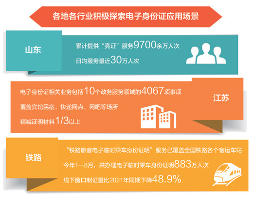 党的二十大报告提出,加快建设网络强国、数字中国。推广居民身份证电子证照应用是建设数字中国、提高政务服务能力的重要举措。近年来,为提升便民服务水平,各地各行业大力推动电子身份证在金融、教育、医疗、社保、税务等多种场景下的应用,为群众带来更加便利的数字生活。