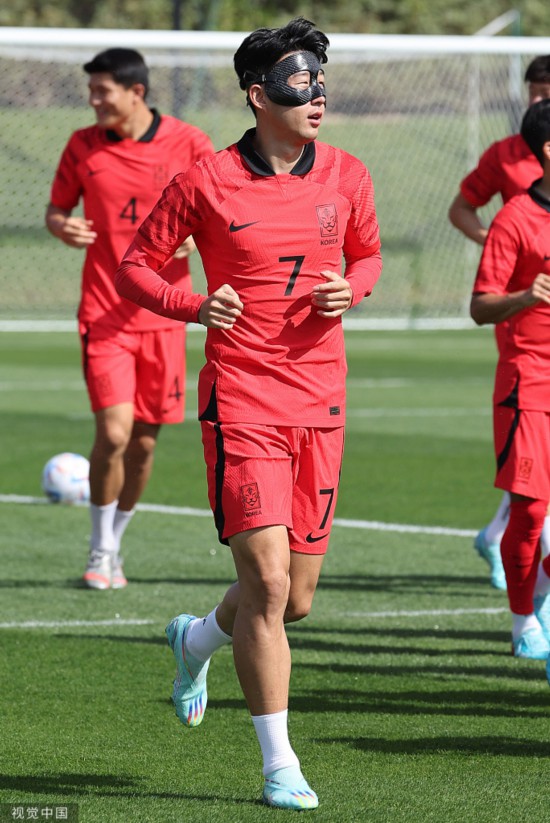 11月16日,孙兴慜戴黑色护具参加世界杯训练。