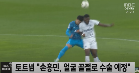 11月2日,孙兴慜受伤瞬间画面(韩国MBC电视台)