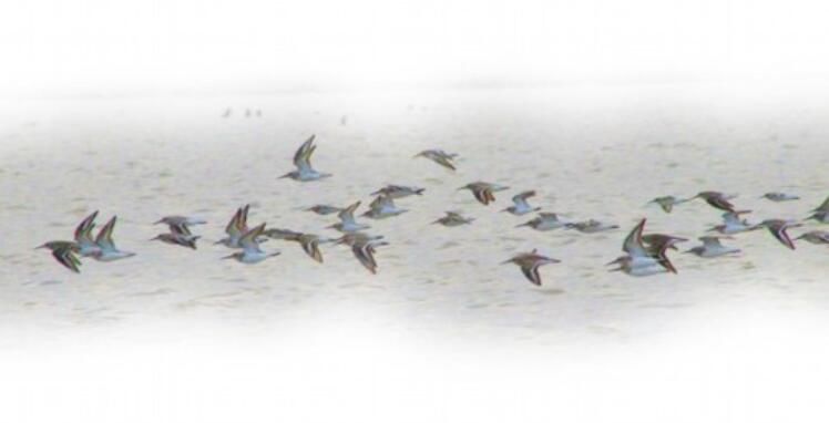 在邵伯湖上,可以见到一群一群的鹬鸟,在湖面迅疾低飞。在阳光的照射下,只见一阵阵白亮光从眼前闪过。湖上,也有那体形硕大的苍鹭,远远望去,就跟一个个雕塑一样,长时间伫立在水中。