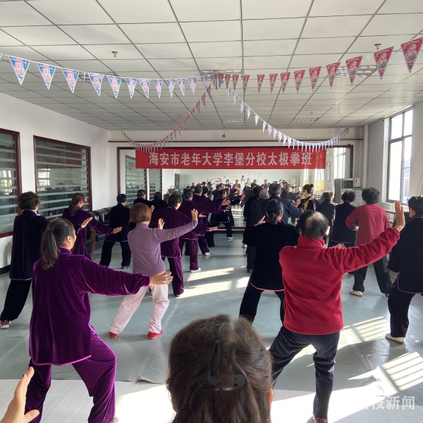 “老年大学在家门口开班,我们的晚年生活可谓是多姿多彩。”今天(11月17日),在南通海安市老年大学李堡分校,学员们正在教室里学习打太极拳,每个人的脸上洋溢着喜悦的笑容。今年69岁的刘美兰正是李堡分校太极拳班的一位学员,她说,家门口的老年大学既提供了场所,又邀请了专业的老师,老年人在这里学到了知识,也结识了朋友,切实实现了在老有所为中实现老有所乐。