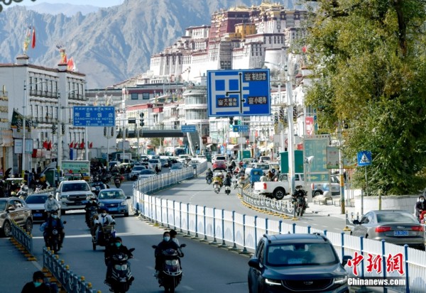 11月17日,拉萨市北京东路车流人流渐多。近日,在拉萨八廓街道、吉日街道、吉崩岗街道等主城区及市区主要路段,车流量、人流量逐步恢复。随着拉萨市新冠肺炎疫情防控形势持续向好,各行各业有序复工复产,民众生活逐步正常,街头巷尾的“烟火气”渐浓。 中新社记者 李林 摄