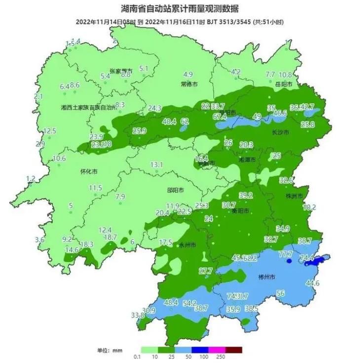 湖南省自动站累计雨量观测数据(2022年11月14日08时至11月16日11时)