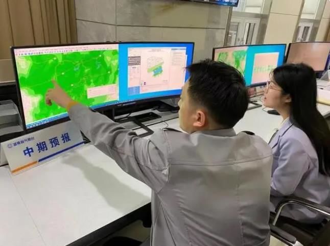 湖南省气象台预报员正在针对此轮降水过程讨论摄影:孙姣