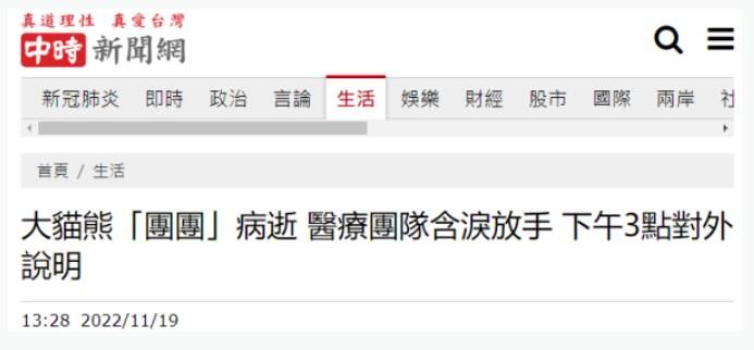 据台媒19日消息,大熊猫“团团”17日短时间内发作4次癫痫,台北市动物园18日召开记者会表示“团团”精神食欲状况都不太好。报道称,19日凌晨1时5分、1时56分、3时54分连续3次癫痫发作,医疗团队最终含泪决定放手,让“团团”在麻醉沉睡中离开,动物园将于下午3时开记者会说明。