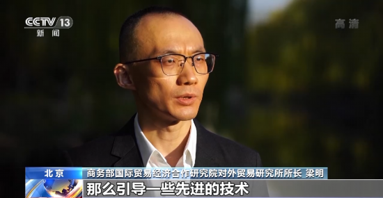 商务部国际贸易经济合作研究院对外贸易研究所所长 梁明:通过这些示范区,我们引导一些先进的技术,包括高端的零部件进入到中国,为我们外贸的高质量发展,进一步贡献力量,然后通过他们的一些创新,进一步地扩大我们进出口的一个规模。