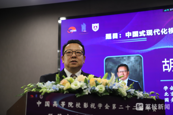 在随后举行第十五届中国影视高层论坛主题论坛上,国务院学位委员会戏剧影视学科评议组召集人,学会学术委员会主任,北京电影学院党委副书记、副院长胡智锋教授做了题为“中国式现代化视野下中国电影发展新空间”的发言,指出要将中国式现代化作为今后一个历史时期中国电影事业产业发展的根本方法。首先,要开辟新道路,始终坚守中国特色,始终坚持高质量发展模式,始终坚持以人民为中心,始终坚持国内国际双循环发展战略;其次,要树立新理念,传递共同价值,分享共同经验,呈现共同情感;第三,要书写新形象,奋力书写伟人形象,用心书写英雄形象,用情书写新人形象;第四,要构建新话语,在创新技术话语、艺术话语、文化话语、学术话语体系的同时,不断做大做强传播渠道、平台,提升话语传播力。
