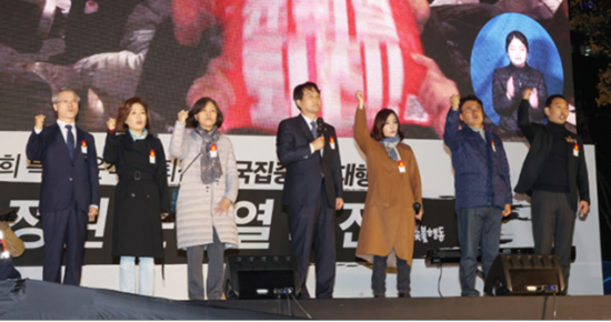 多家韩媒在报道中提到,韩国最大在野党共同民主党籍议员安敏锡等6人也参加了当晚集会,并在集会时上台演讲,发表批评尹锡悦政府的观点。安敏锡在活动中表示:“尹锡悦政权比李明博政权更邪恶,比朴槿惠政权更无能!”针对上月底发生的梨泰院踩踏事故,他表示,政府应该对此进行特别检察,执政党国民力量党也应接受特别检察;尹锡悦应该就此向国民公开道歉,并立即罢免国务总理韩德洙和内政安全部长官李相民。共同民主党议员刘正珠也说道,“现在这里不是民主主义的大韩民国,而是检察王国”,并号召尹锡悦政府下台。