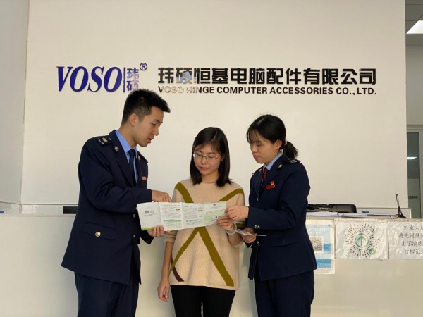 税务工作人员为重庆玮硕恒基电脑配件有限公司财务人员讲解新的组合式税费支持政策。新华社发(李林蔚 摄)