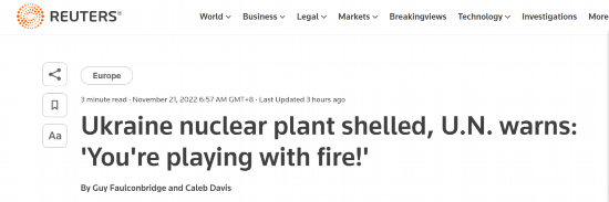 综合路透社、美国消费者新闻与商业频道(CNBC)等媒体20日消息,目前由俄罗斯控制的扎波罗热核电站当地时间20日遭到炮击,引发联合国核监督机构——即国际原子能机构(IAEA)的谴责,后者称此类袭击有可能引发重大灾难。