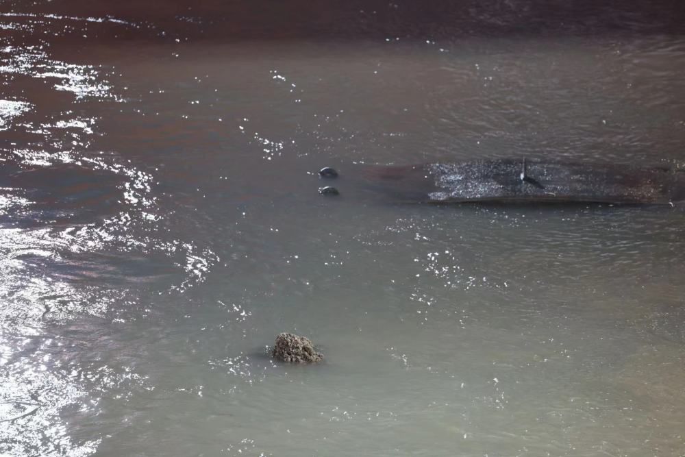 ↑11月21日拍摄的长江口二号古船桅杆出水画面。