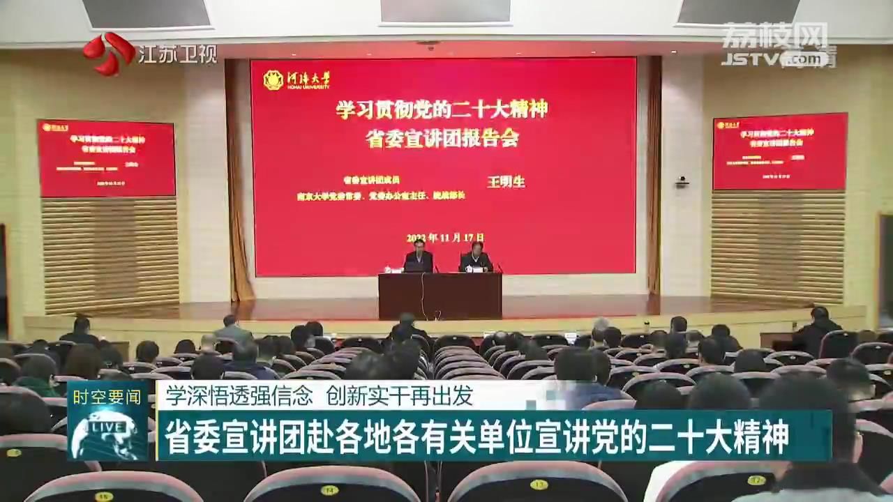 省委宣讲团成员、南京大学党委常委、党委办公室主任、统战部部长王明生17日来到河海大学,他从深刻领悟党的二十大主题和主要成果、过去5年的工作和新时代10年的伟大变革等方面,对党的二十大精神进行了系统阐释。他勉励广大青年学子,怀抱梦想,脚踏实地,锐意进取。