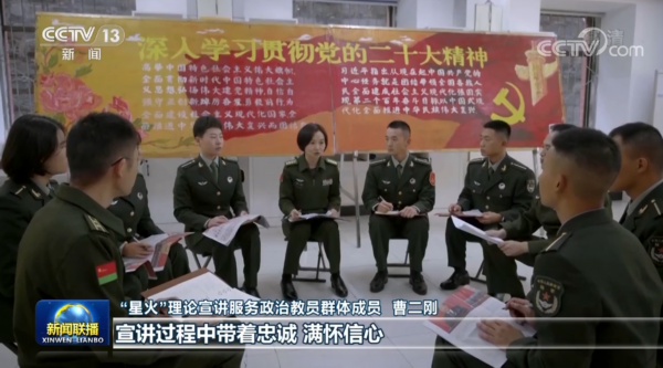 央视网消息(新闻联播):陆军工程大学“星火”理论宣讲服务政治教员群体,坚持不懈用习近平新时代中国特色社会主义思想武装官兵,学习宣传习近平强军思想,积极推进党的创新理论通俗化大众化,开展理论服务走基层活动,将真理的火种播撒到祖国大江南北。