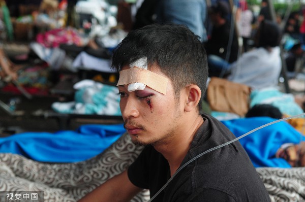 当地时间2022年11月22日,印尼西爪哇省展玉地区发生5.6级地震,萨扬地区综合医院人满为患,地震灾民在紧急帐篷中接受治疗。