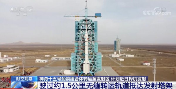 总台记者 李晓旭:执行此次神舟十五号载人飞行任务的船箭组合体,经过1.5小时的转运已经到达发射区,这就意味着长征二号F遥15运载火箭已经进入最后的发射准备阶段。