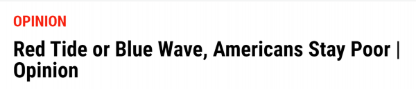 《新闻周刊》网站发布的另一篇评论文章甚至表示,不管是民主党还是共和党获胜,踩在大多数美国人脖子上的靴子还在,“美国依然是多数人都贫困的国家”。美国社会安全局(Social Security Administration)公布的去年的工资统计数据惨淡,再次证明了这点。