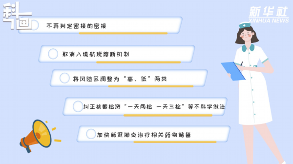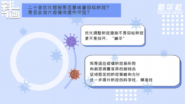 不再判定密接的密接,取消入境航班熔断机制,将风险区调整为“高、低”两类,纠正核酸检测“一天两检”“一天三检”等不科学做法,加快新冠肺炎治疗相关药物储备……二十条优化措施公布后,引起社会广泛关注。聚焦落实过程中公众关注的热点问题,国务院联防联控机制有关专家作出权威回应。