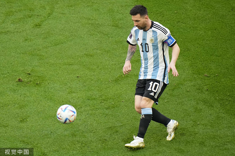 11月22日,阿根廷队对阵沙特阿拉伯队,比赛开场不到10分钟,梅西操刀点球,一蹴而就,获得本届世界杯首个进球。