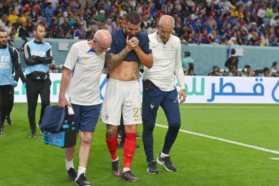 在22日法国队与澳大利亚队的D组小组赛中,卢卡斯在一次防守后倒地不起,随后被弟弟特奥换下。法国队证实,卢卡斯伤势严重,将无法参加后面的比赛。