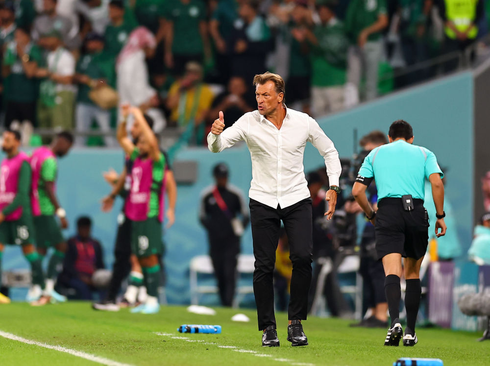 11月26日,沙特阿拉伯队主教练勒纳尔在场边指挥。新华社记者丁旭摄