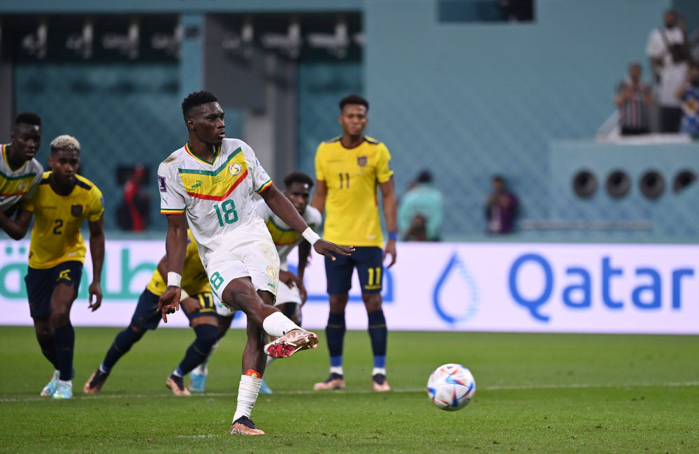 11月29日,塞内加尔队球员萨尔(前)在比赛中主罚点球破门。新华社记者 陈诚 摄