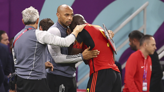 终场哨响,比利时0:0战平克罗地亚。卢卡库径直走向场边,一拳击碎了比利时队替补席的玻璃挡板,他随后用衣服蒙起自己的脸。比利时队助理教练、曾经的传奇射手蒂埃里·亨利走上去抱住了他。这位29岁、身高1米90的大块头靠在教练肩膀上,委屈得像个孩子。