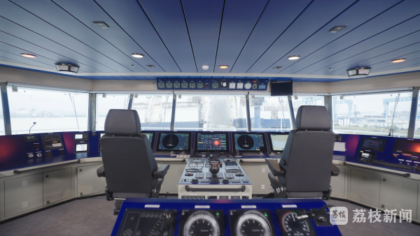 金陵船厂生产管理部经理陈家荣向记者介绍:“这条船的一大特点就是绿色环保,大家看我身后这两个500立方的天然气储存罐,一共1000立方,它是用天然气能源替代传统的柴油和重油,我们船上的4台主机4台发电机2台锅炉均可以双燃料运行,较传统的燃油相比,废气排放能降低50%以上。”