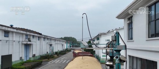 在中央储备粮江西泰和直属库门口,我们看到运粮车送来的稻谷通过检测、过磅称重后,直接通过输送带运送到粮仓里,中途不需要人工搬运,确保运输环节无损耗,不浪费粮食。