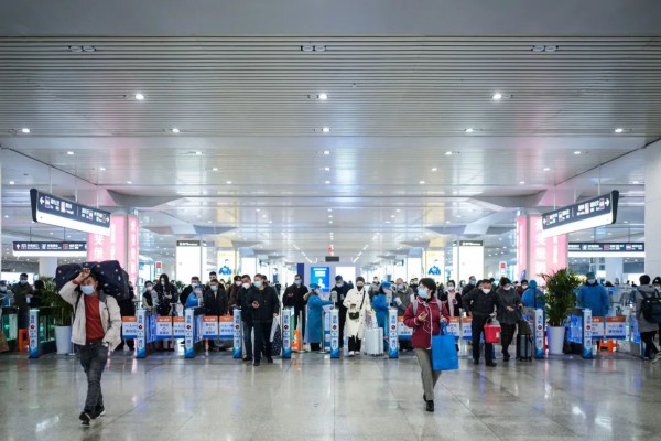 杭州东站旅客出站口,旅客正在陆续出站(央广网记者 尚天宇 摄)