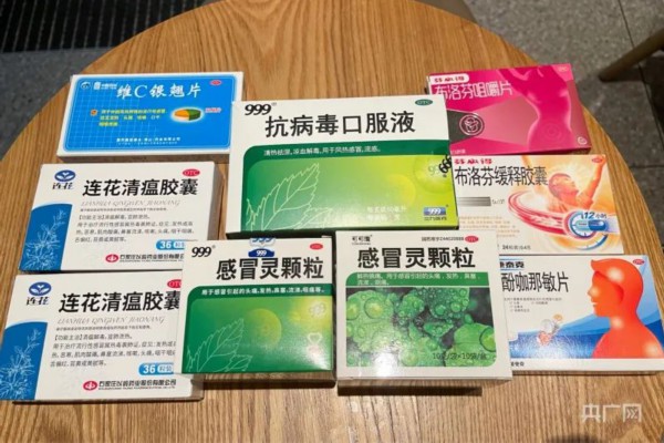 记者现场购买的部分感冒退热药物(央广网记者 官文清 摄)