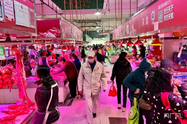 连日来,广州各区持续优化疫情防控措施,包括有序恢复堂食、密闭半密闭场所有序开放、取消查验48小时核酸证明等。12月5日上午,央广网记者走访广州城区内的部分肉菜市场,直击“精准防控”下的广州烟火气,发现广州的生产生活正有序恢复。
