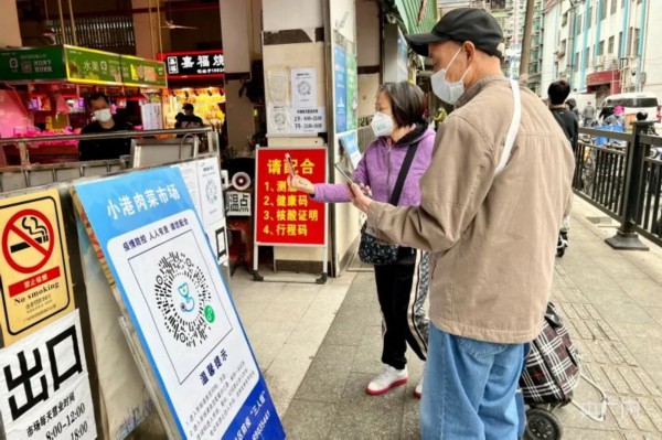 市民进入市场只需扫场所码,不再查验48小时核酸(央广网记者 黄璐璐 摄)