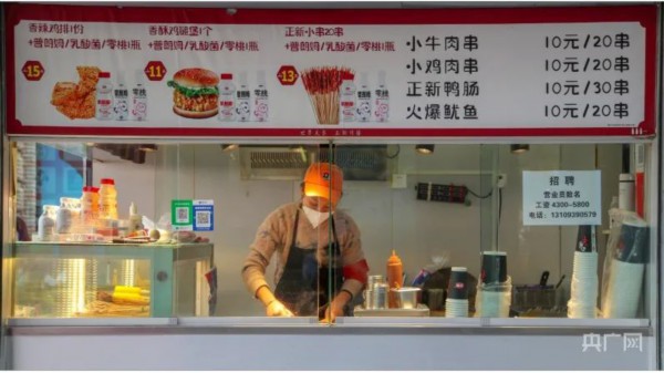一名店员正在餐饮店忙碌(央广网记者 贾海元 摄)