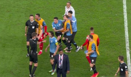 【环球时报特约记者 吕 克】虽然引入视频助理裁判(VAR)和半自动越位识别技术(SAOT),但本届世界杯关于裁判的判罚争议依然不断。据美联社5日报道,因冒犯裁判,4名乌拉圭球员面临纪律处分。