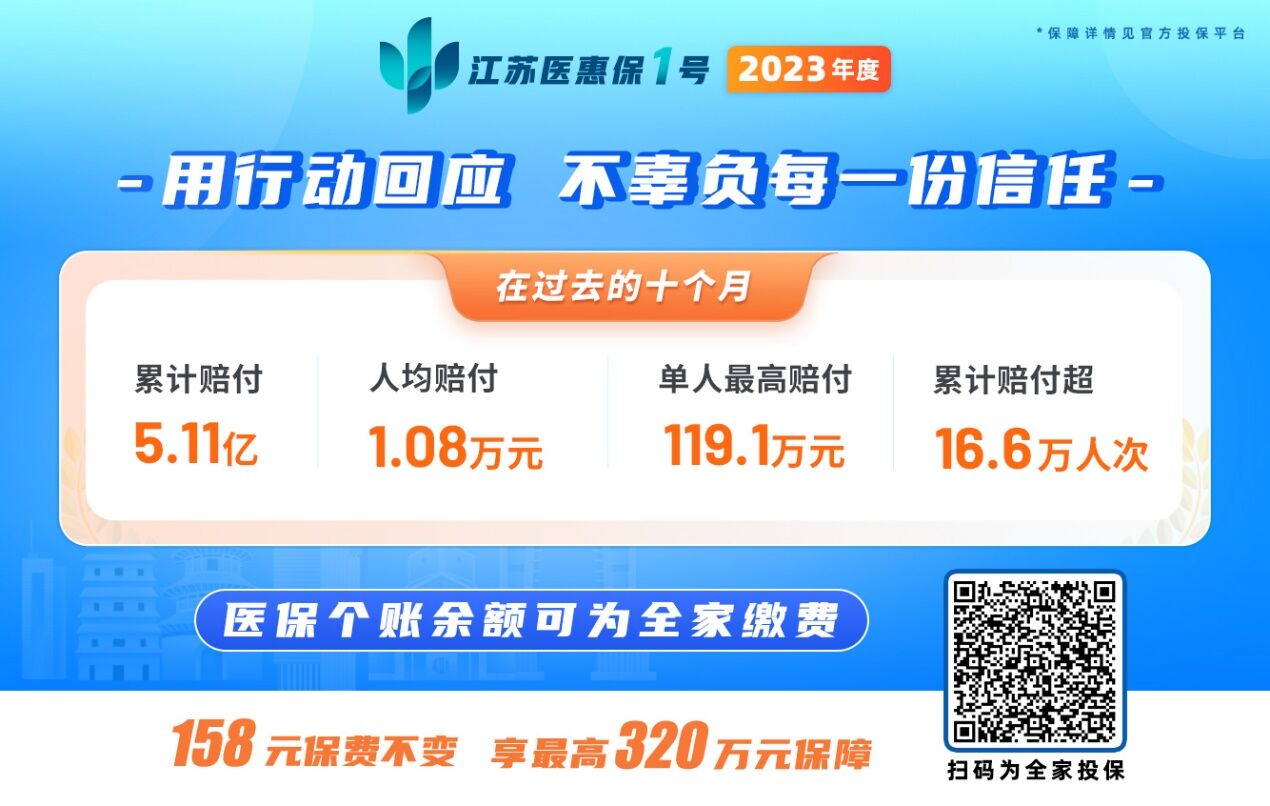 “江苏医惠保1号”普惠性质明显,一年只需158元,享最高320万保障,在医保待遇基础上,对符合条件的医保参保人进行再赔付,进一步缓解人民群众高额医疗支出,让全省参保群众看病负担再减轻。“医保+医惠保”正成为众多江苏家庭标配。
