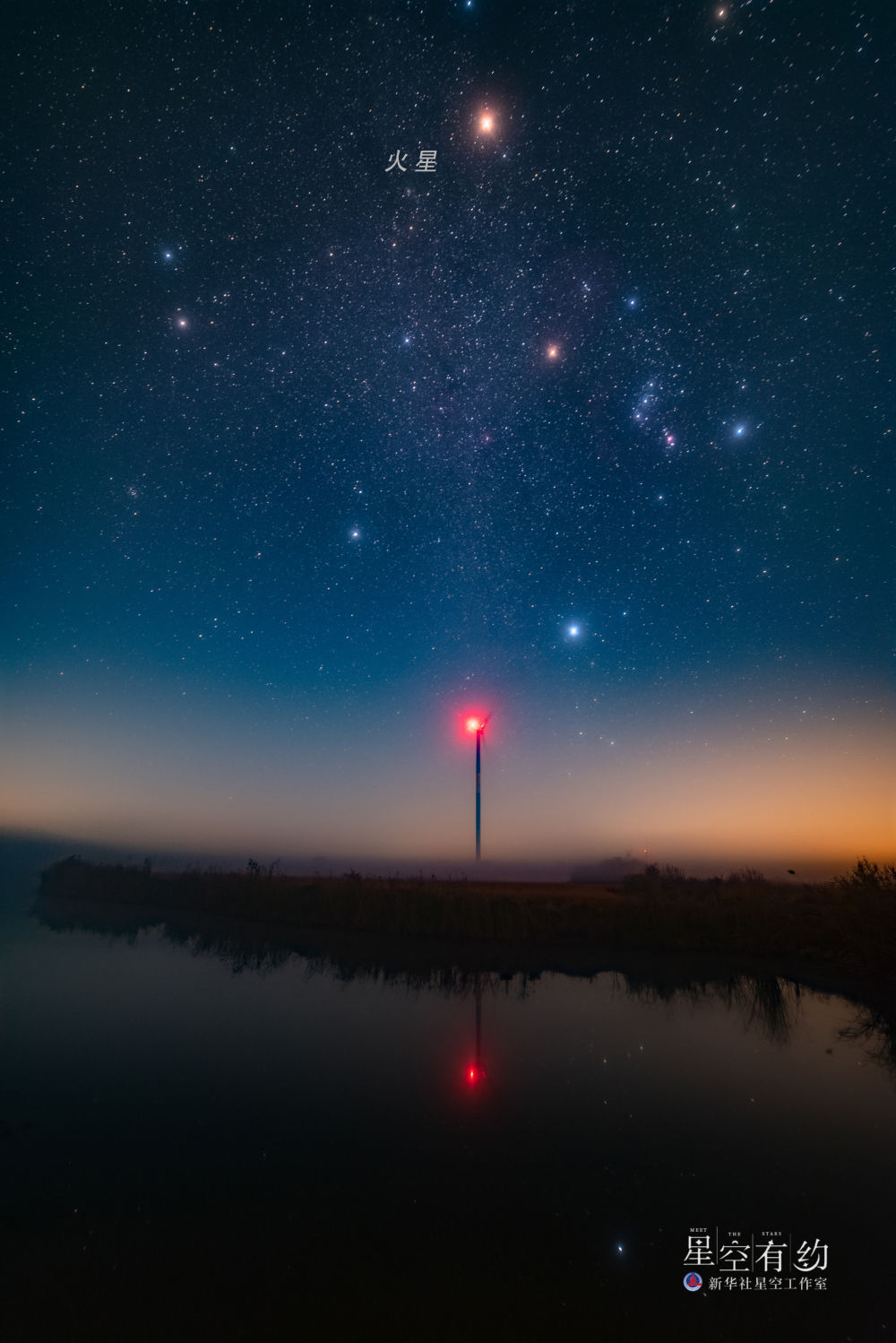 中国天文学会会员、天津市天文学会理事修立鹏介绍,8日日落后不久,明亮的火星从东南方升起,亮度约-1.8等,超过全天最亮的恒星天狼星,在深夜的星空中仅次于-2.5等的木星。