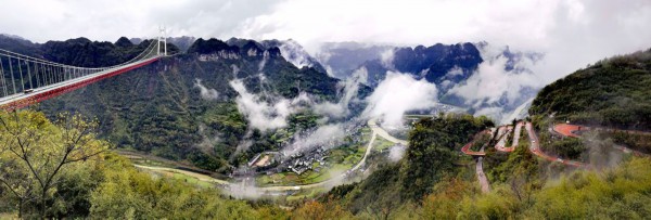 ↑ 2012年3月31日,即将建成通车的矮寨大桥。