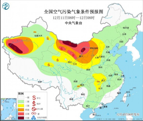 同时,在冷空气大风的吹袭下,新疆东部和南疆盆地、内蒙古中西部、甘肃中部、青海北部和西部、宁夏、陕西、山西、河北西部等地还有可能出现扬沙或浮尘天气,局地有沙尘暴,外出时需注意防护。
