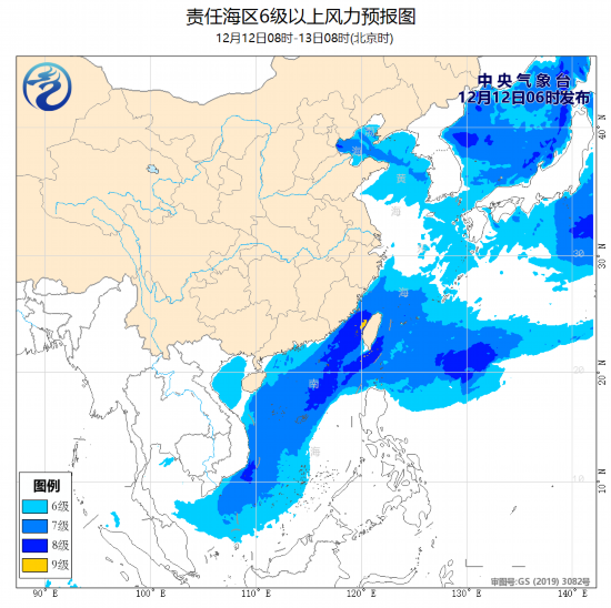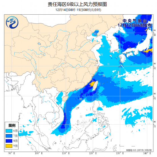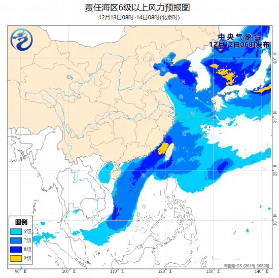 12日白天至14日夜间,渤海、渤海海峡、黄海大部海域、东海大部海域、台湾海峡、台湾以东洋面、巴士海峡、南海大部海域、北部湾将有6~8级、阵风9级的偏北或东北风,其中台湾海峡的部分海域风力可达9级、阵风10~11级。为此,中央气象台12月12日06时继续发布《海上大风预报》。