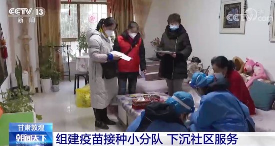 在甘肃敦煌市沙州镇,新冠疫苗接种小分队下沉到社区,为长期居家、行动不便的老年人开展新冠病毒疫苗入户接种服务。医护人员每到一户都要向居家老年人进行健康问询和接种注意事项的指导,并按流程为老年人接种新冠疫苗。