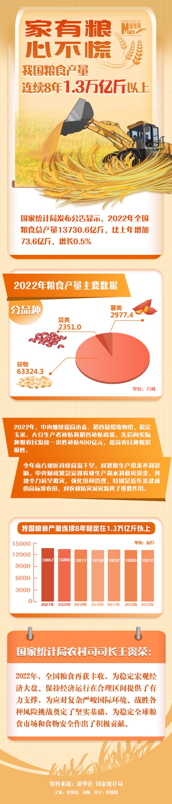 家有粮,心不慌——我国粮食产量连续8年1.3万亿斤以上