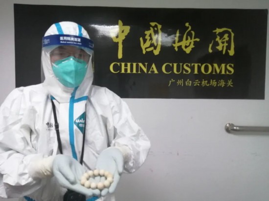 近日,广州海关在广州白云机场空港口岸旅检渠道查获3名旅客违规携带进境的象牙制品,共计13件,总重约300克。
