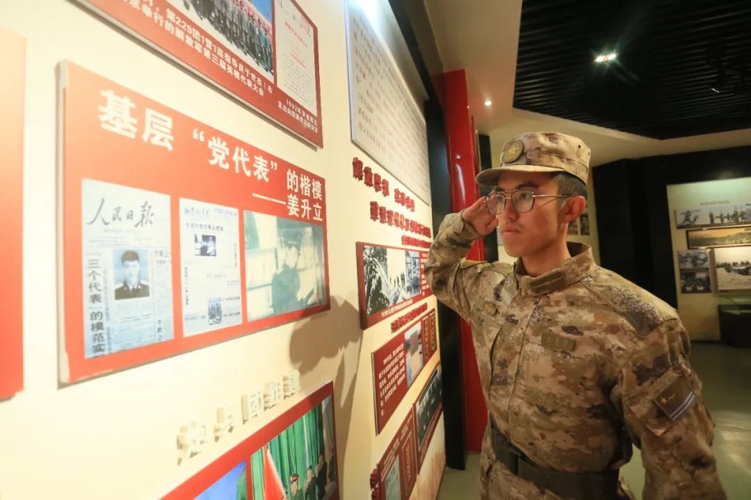 爸爸,今天旅里集训队安排新任职排长参观旅史馆。陈列墙上,我看到“基层‘党代表’的楷模——姜升立”的专栏。照片中,你正站在报刊架前阅读报刊。凝视着你的照片,我从未感觉自己离你如此之近。我仿佛听见你对我说:“儿子,欢迎你!”