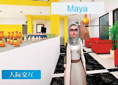 国际中文教育元宇宙中,学生在虚拟留学生公寓。