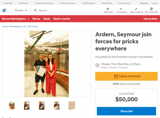 报道称,截至当地时间周五(16日),目前对该文字记录副本的竞标已达到5万新西兰元(约合22万人民币)。拍卖网站显示,这场慈善活动名为“阿德恩和西摩联手为了各地的‘混蛋’”,拍卖将于22日结束。